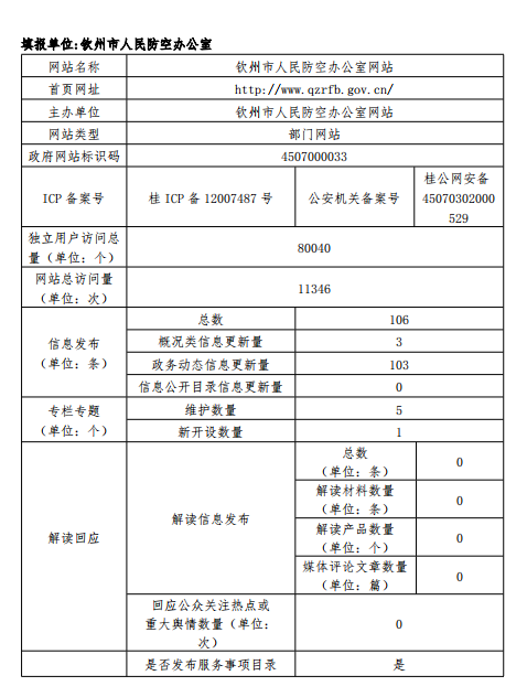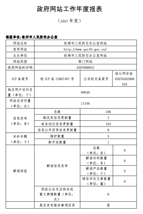 钦州市人民防空办公室2017年政府网站工作年度报表
