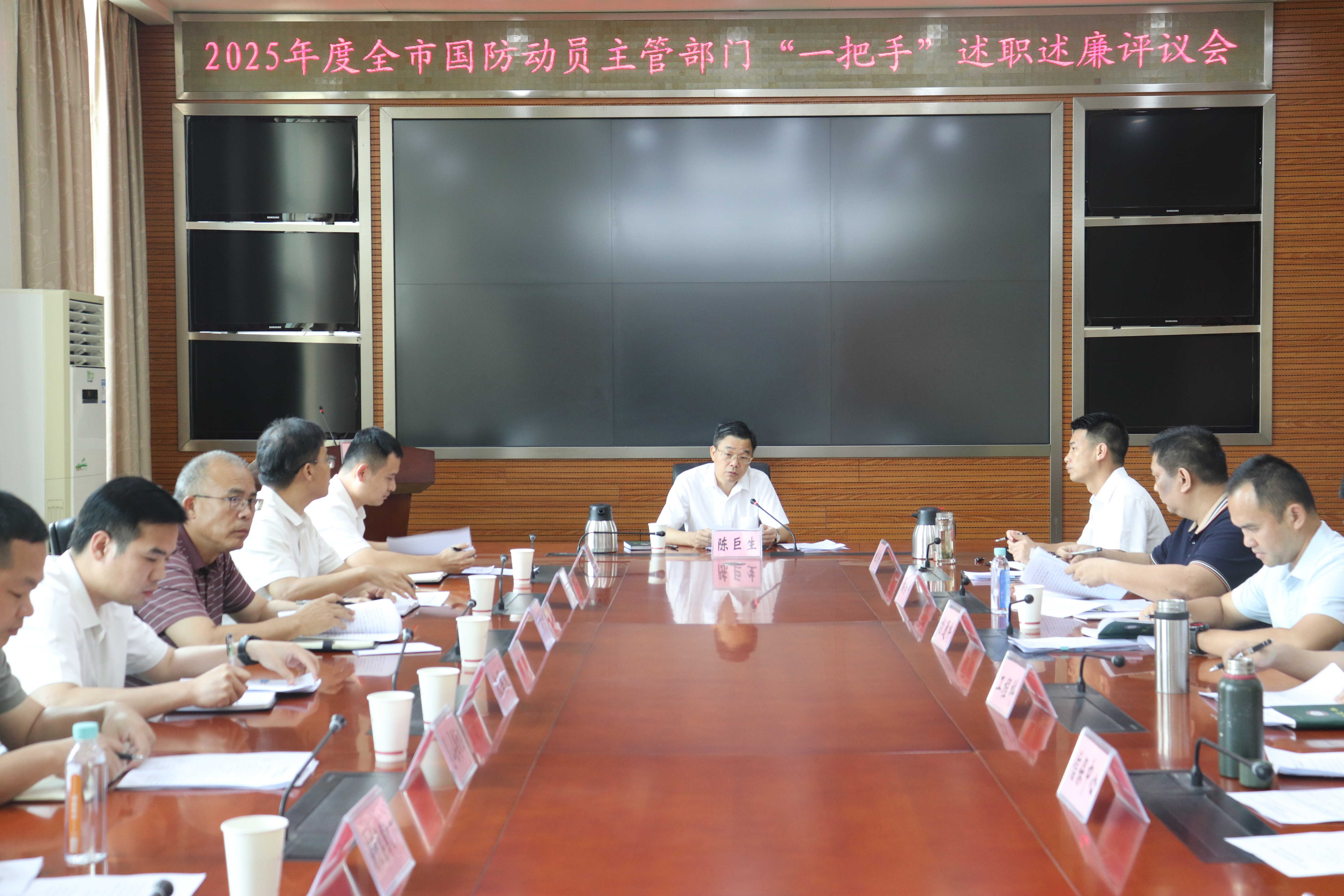2026年4月14日,钦州市国防动员办公室召开2025年度全市国防动员主管部门“一把手”述职述廉评议会议。市国动办党组书记、主任陈巨生主持会议,灵山县、浦北县、钦南区、钦北区国防动员主管部门“一把手”参加会议。
