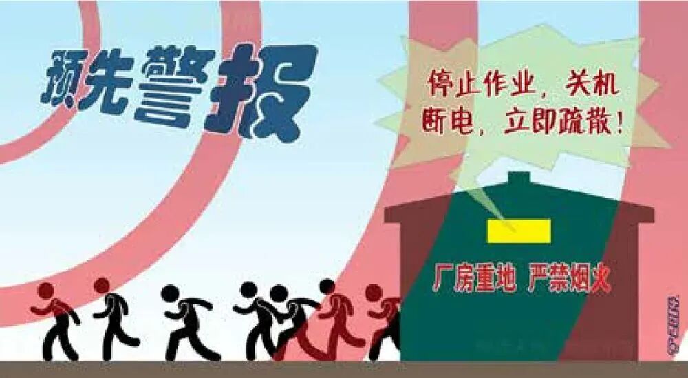 除非特殊情况,所有企业应立即停止生产,组织员工关闭门窗、切断电源和燃气等,迅速疏散掩蔽。