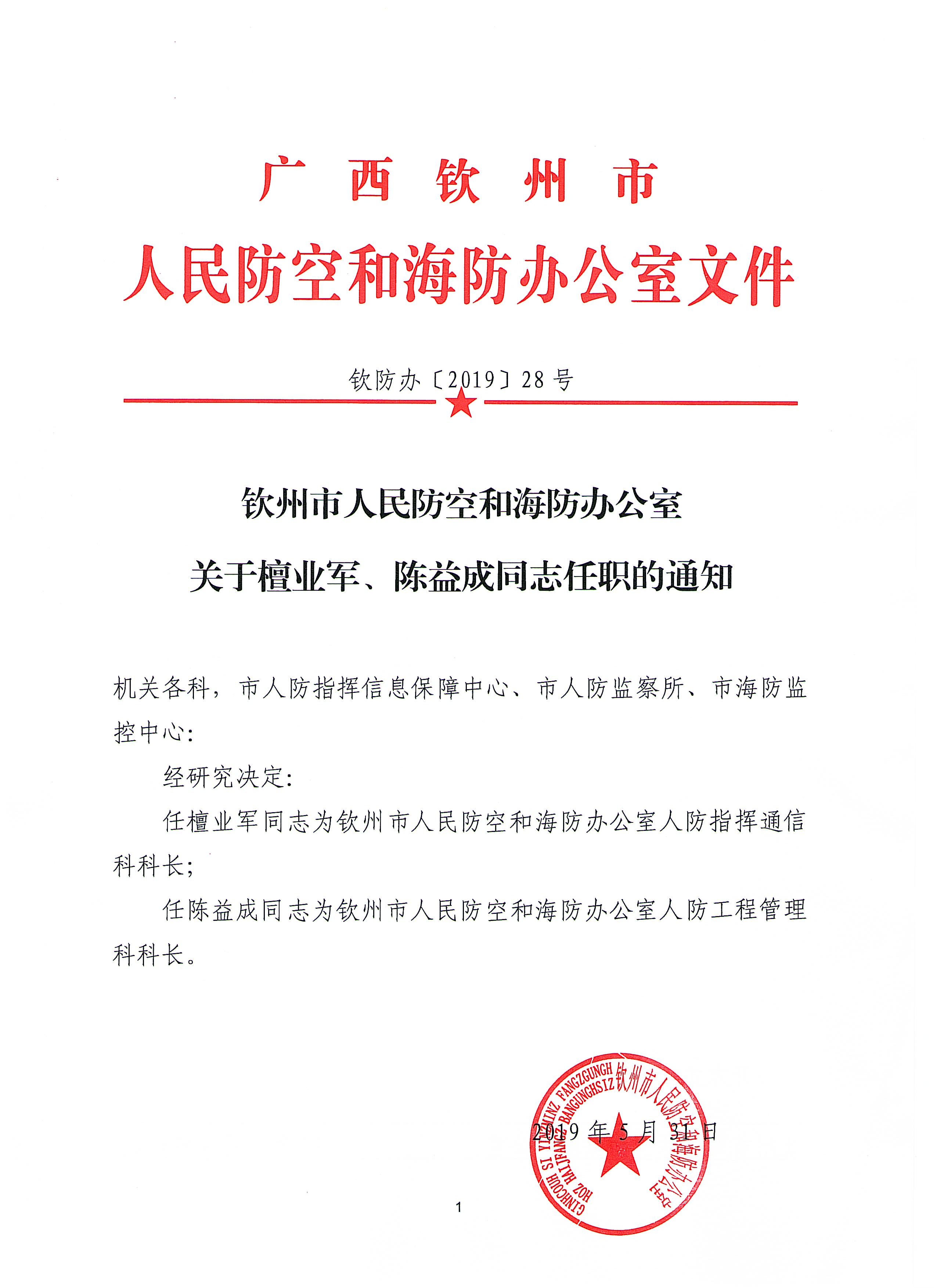 钦州市人民防空和海防办公室关于檀业军、陈益成同志任职的通知.pdf