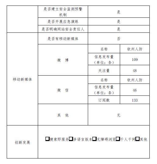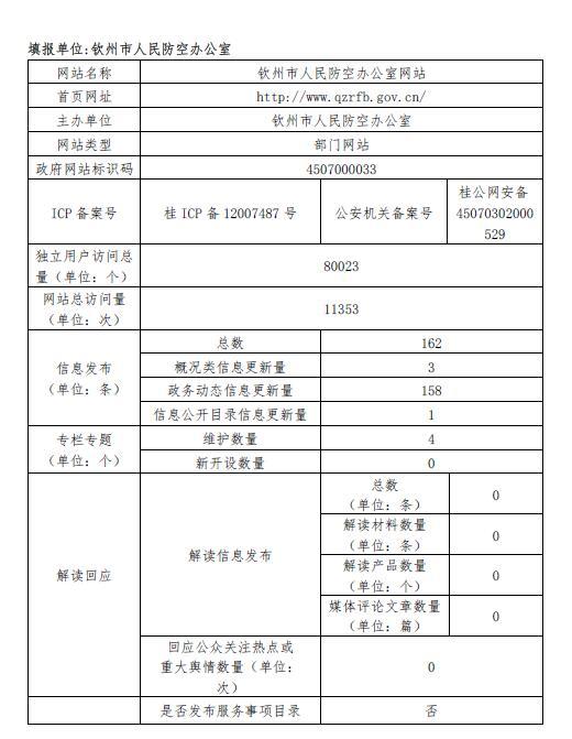 钦州市人民防空办公室2018年政府网站工作年度报表