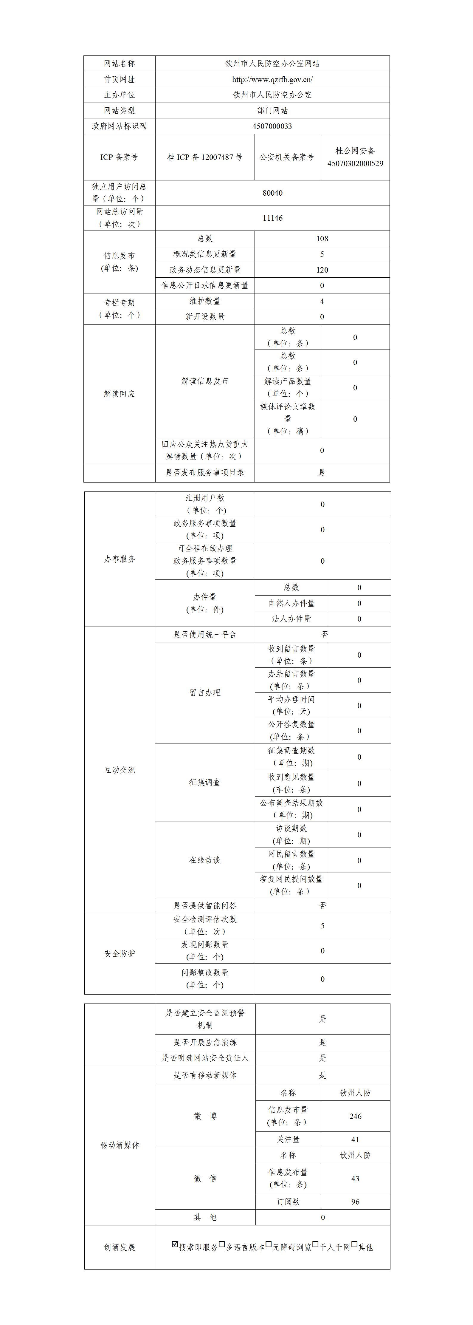 钦州市人民防空办公室2015年政府网站工作年度报表